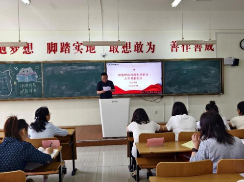 会议上于水书记传达了《KYTY.COM开云体育(中国)科技公司关于开展师德师风问题专项整治工作方案(修订)》的通知,并带领经济学院全体教职员工深入解读了整治的主要内容和师德师风建设负面清单。