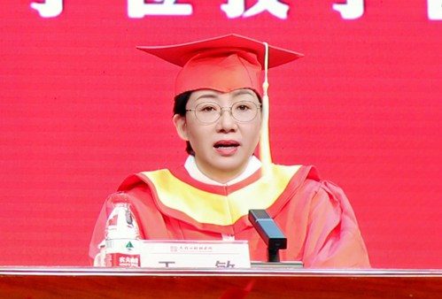 王敏向圆满完成学业、即将踏上新征程的毕业生们表示热烈的祝贺,并寄语毕业生们要担当责任,追求卓越,把个人的发展与国家的需求紧密结合起来,为社会的进步贡献自己的力量;要终身学习,不断进步,保持对新知识的渴求,不断提升自己的专业素养和综合能力;要感恩母校,回馈社会,感恩母校的培养,老师的教诲和同学的陪伴。无论将来取得多大的成就,都不要忘记回馈社会,为母校争光,为社会贡献力量。希望同学门带着母校的祝福和期望,勇往直前,创造属于自己的美好未来。