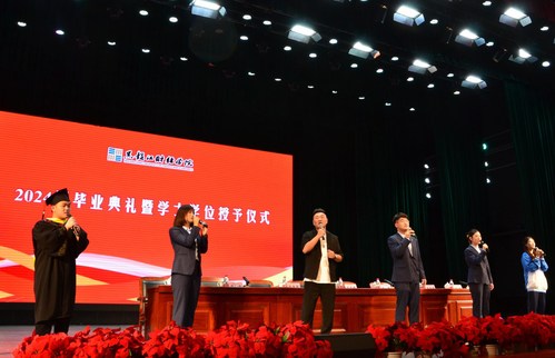 据悉,在毕业典礼开场之前,哈尔滨文旅推荐大使“左右哥”姜可东和我校师生共同带来了热场show,在歌曲《赴约》《再见》中为毕业生们送上最后的祝福。学校全媒体中心还精心为毕业生准备了毕业礼物——“落叶归根,青春启航”配有学校文化标识的钥匙链。希望毕业生们带着母校的祝福和老师们殷殷期望奔赴下一场山海,祝愿所有毕业生在未来的工作和生活中奋楫扬帆、再谱华章。