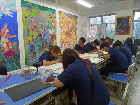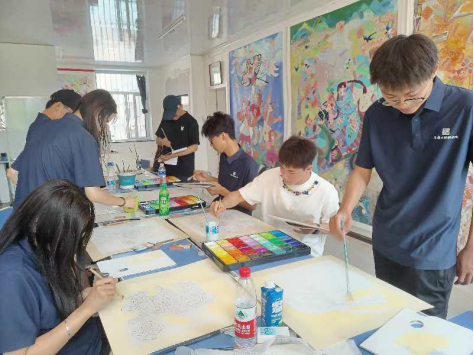 在实践环节,学生们纷纷拿起画笔,以宾县的自然风光、民俗风情和乡村生活为素材,亲身体验农民画的创作过程,描绘出心中的美好画卷。