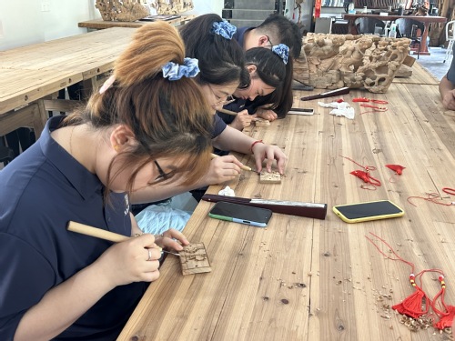 在为期一周的活动中,团队成员收获满满。他们不仅熟练掌握了徽州木雕的基本技艺,深入探究了这一传统艺术背后的历史和文化背景,还通过实地调研拓宽了视野,进一步增强了对传统文化的保护和传承意识。
