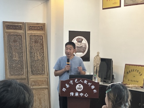 活动伊始,团队有幸邀请到徽州木雕的代表性传承人汪德洪老师。汪老师为学生们带来了一场精彩纷呈的讲座,他不仅深入剖析了徽州木雕的历史渊源,还生动阐述了其独特的艺术风格和精湛的工艺流程。汪老师的博学与热情深深感染了在场的每一位学生,让他们对这门传统技艺有了崭新且深刻的理解与认知。