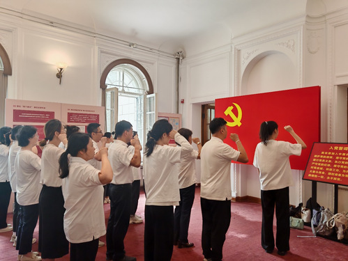 参观结束后,全体教师在鲜艳的党旗前,庄严地举起右拳,在领誓人的带领下重温入党誓词,以坚定有力的宣誓声表达对党忠诚的决心和信心,牢记使命,矢志奋斗,在全面建设社会主义现代化建设的新征程上展思政教师的新风貌、新作为。