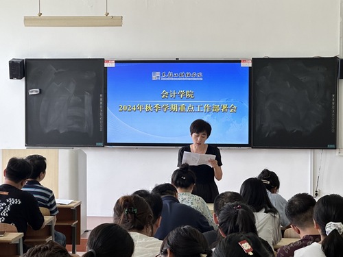 会上,安慧心副院长首先全面阐述了会计学院2024年下半年重点工作的具体要求。一是要高度重视教学合格评估教学相关材料的复查和归档工作,确保资料的完整性、准确性和规范性,务必确保材料完备齐全无问题;二是要明确了解学院专业特色的发展目标,要朝着特色化、差异化的方向努力,以提升专业的竞争力;三是强调教学与科研同步发展、相互促进,切实发挥会计与财务研究中心的引领优势,推动科研成果转化,提升教学质量;四是针对 2025 届学生实习方案及论文工作,详细安排了时间进度,确保各项工作按时有序推进;五是要大力推进专业社团建设与学科竞赛结合,为学生提供更多实践和展示的平台,培养学生的知识技能、创新能力和团队协作精神。