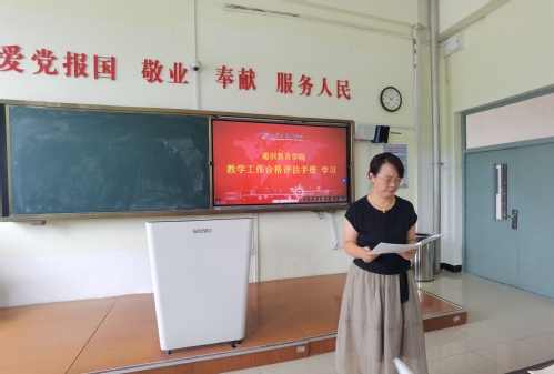 8月21日13:30,通识教育学院在尚学楼118教室召开教学工作合格评估手册学习推进会,会议由院长金巨波主持,通识教育学院全体教师参会。