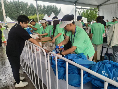 在志愿服务的过程中,我校志愿者们佩戴统一的工作证,身着绿色志愿装,成为了一道亮丽的风景线,为每一位参赛选手提供细致周到的服务。他们有的负责引导参赛选手,有的负责维护现场秩序,有的则负责为选手提供补给等志愿服务。青年志愿者们不辞辛劳,坚守岗位,用实际行动诠释了“奉献、友爱、互助、进步”的志愿服务精神。