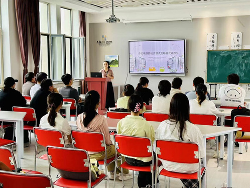 接着,张启蒙教师分享了她在访学过程中的一些具体收获,并做专题讲座,题目是养老项目的运营模式及环境设计探究,专题讲座分析当前养老产业的发展趋势,重点讨论养老环境设计,包括居住空间布局、无障碍设计、以及如何营造温馨舒适的居住氛围。通过案例分享,旨在为参与者提供实用的运营策略和设计思路,以启示养老环境设计项目的多元化发展。