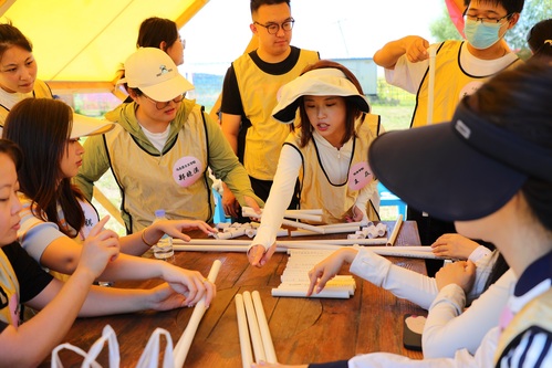 拓展活动采取“破冰分组”的方式将参训学员随机分为四队,分别确定了队长、秘书、安全员、宣传员。队员们在队长的带领下,群策群力起队名、画队旗、唱队歌、喊口号,气拔山河队阳光、人民当家作主队帅气、一路绿灯队青春、归队霸气,各队都摆出姿势合影,留下了美好的纪念,充分展现了龙财新教师的协作能力和青春风采。接下来,各队在“红黑双解码”“防化兵行动”“激情节拍”“共同进退”“大河之舞”“同心鼓”等活动项目中展开了智力与体力的大比拼,各个环节中团结协作、激烈角逐,在快节奏的体验中感受团队合作带来丰硕的成果。