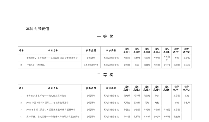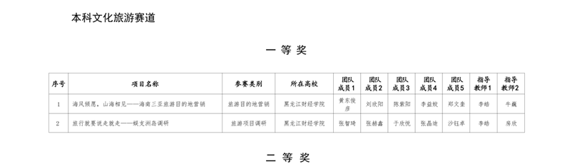 本次比赛我校师生积极响应,参赛热情空前高涨,共派出23支参赛队伍。竞赛中我校师生奋力拼搏,经过激烈角逐取得了优异成绩,充分展示了我校师生的专业素养和创新能力。在本科文化旅游赛道我校获得一等奖两项、二等奖四项、三等奖四项;本科会展赛道获得一等奖两项、二等奖四项、三等奖四项。特别在本次省赛精英赛中,由李皓老师、王雪晶老师指导的团队获得了本科组亚军的殊荣。