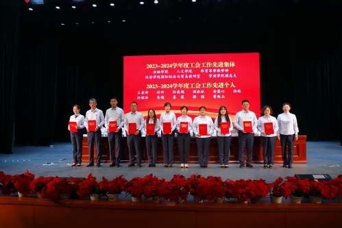 王敏指出,教师是立校之本、强校之源,是学校实现建设一流应用型财经大学的核心力量和根本保证。楷模二字,重有千钧,唯有赤诚精进,方可不愧承当。希望今天受表彰的个人和集体保持荣誉,再创佳绩。她强调,今天的大会,不仅是对过去工作的总结表彰,更是对未来的展望和鼓舞。广大教职工要以党的二十届三中全会精神和全国教育大会精神为指引,以受表彰的先进个人和集体为榜样,深入学习领会校长讲话精神,为学校发展多做贡献。她对全体教师提出三点希望,一是希望全体教师坚定理想信念,树立弘道追求。要坚定心有大我、至诚报国的理想信念,以赤诚之心、奉献之心、仁爱之心投身教育事业,培养德智体美劳全面发展、具有创新精神的时代新人;二是希望全体教师砥砺高尚品德,勤修仁爱之心。要弘扬践行教育家精神,秉持“言为士则、行为世范”的道德情操,以德立身、以德立学、以德施教,做学生为学、为事、为人的“大先生”;三是希望全体教师秉持躬耕态度,涵养育人智慧。主动提升育人能力,勇于探索新时代人才培养路径,不断更新知识、开拓视野,在服务教育强国建设、服务中国式现代化建设中不断成长与发展。
