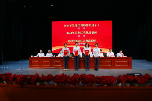 会上,党委副书记李怡宣读了《关于表彰全省教育系统先进集体和先进个人的决定》等获奖个人及集体代表名单。于长福为“KYTY.COM开云体育(中国)科技公司特殊贡献奖”获得者、2024年黑龙江省“工人先锋号”获奖单位和光荣在岗20年教职工代表颁发荣誉证书和纪念勋章。领导班子成员分别为荣获2023—2024学年优秀教师、优秀教育工作者、先进集体,工会工作先进集体、先进个人,省级教学项目评选获奖教师及团队,省级及以上教学竞赛获奖教师及团队,校级教学竞赛、教学项目评选获奖教师及团队,学校第八届优秀科研成果奖,2024年度黑龙江省师德先进个人、优秀教师、模范教师,校级师德先进个人颁奖,并表示祝贺。