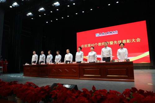 9月11日,我校在音乐厅举行庆祝第40个教师节暨先优表彰大会。校长于长福等领导班子成员出席大会。党委书记王敏主持会议。