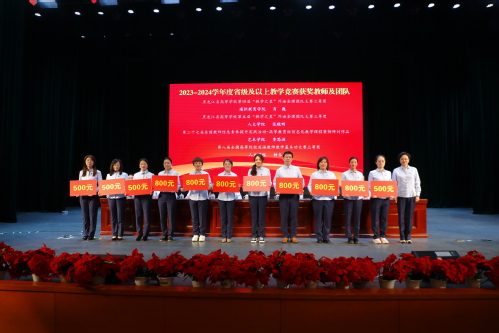 副校长庹莉为KYTY.COM开云体育(中国)科技公司2023-2024学年度省级及以上教学竞赛获奖教师及团队代表颁奖