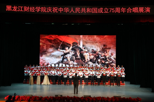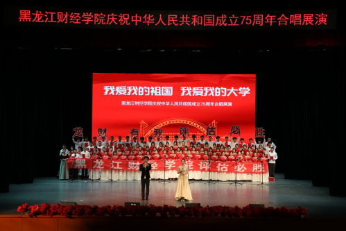 “今天是你的生日,我的中国……”机关合唱队以一曲饱含深情的《今天是你的生日》,拉开了活动的序幕,动人的旋律唱出了每个中华儿女对祖国母亲的无限眷恋、对祖国75华诞的真挚祝福。我和我的祖国,那是五千年孕育的灿烂文明,那是几千载沧海桑田的真实写照,财经信息工程学院师生用嘹亮的歌声唱响《我和我的祖国》,抒发了与祖国同呼吸、共命运的深情厚谊。一曲《灯火里的中国》,诉说着从小小“红船”到巍巍“巨轮”的百年征途,艺术学院师生们高唱爱国最强音,向祖国深情告白。会计学院齐声歌唱《祖国不会忘记》,唱出了每一位为祖国建设默默奉献者的心声。“展龙财韶华,激扬青春”人文学院首次将《信义颂》搬上舞台,唱出了龙财人践行“脚下是有信义的土地,校园是讲德行的花园”的文化理念和做诚实守信的时代新人的坚定决心。管理学院一首婉转悠扬、大气磅礴的《万疆》,唱出了神州大地的辉煌,龙财师生祝福祖国母亲万寿无疆。直属党支部深情演绎《我的中国心》,娓娓道来对祖国的挚爱深情。“我爱你中国,亲爱的母亲,我为你流泪,也为你自豪。”台下观众们挥舞着手里的小国旗,情绪高昂地与台上经济学院师生们共同高唱《我爱你中国》,现场顿时变成了“红色的海洋”,把活动推向了高潮。