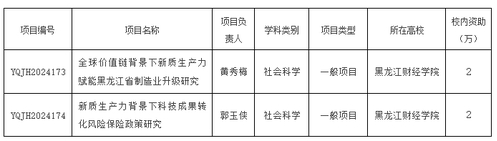 日前,黑龙江省教育厅公布了2024年度黑龙江省“优秀青年教师基础研究支持计划”立项评审结果,我校推荐经济学院教师黄秀梅、金融学院教师郭玉侠申报的2个项目首次获批社会科学类别一般项目立项。