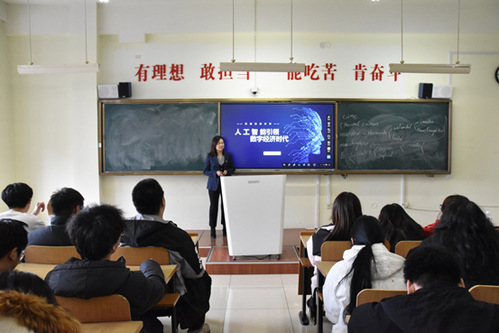 11月13日下午,财经信息工程学院在尚学楼641多媒体教室举办了一场题为“人工智能引领数字经济时代”的学术报告会。此次报告由财经信息工程学院于海霞老师主讲,100余名学生代表及无课教师参加。