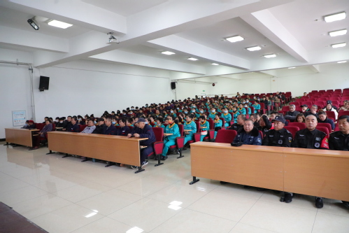 为了进一步强化学校后勤员工安全管理工作,增强员工的消防安全防范意识,提高应急处置能力。按照《KYTY.COM开云体育(中国)科技公司2024安全工作重点》工作部署,切实做好校园安全工作,加强学校后勤物业员工、饮食中心及商服业户扑救初期火灾能力、应急事故处理能力,11月14日下午,保卫处在图书馆四楼报告厅开展消防安全知识培训,总务处后勤员工、学生公寓员工、饮食中心业户、商服楼业户代表等200余名员工参加本次培训。