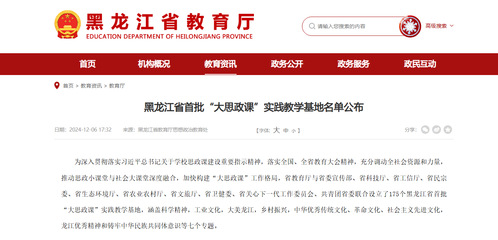 “大思政课”实践教学基地,是贯彻落实习近平总书记关于学校思政课建设重要指示思政,落实全国、全省教育大会精神,充分调动全社会资源和力量,推动思政小课堂与社会大课堂深度融合,加快构建“大思政课”工作格局的重要步骤,是全省各级各类学校开展思政教育的重要载体和平台。全省共设立175个“大思政课”实践教学基地,涵盖科学精神、工业文化、大美龙江、乡村振兴、中华优秀传统文化、革命文化、社会主义先进文化、龙江优秀精神和铸牢中华民族共同体意识等7个专题。将为大中小学校开展思政课实践教学提供优质丰富的教育教学资源,与学校打造具有黑龙江省品牌力和影响力的精品课程,拓展思政课教育教学深度广度,提升思政课的针对性和吸引力,引导学生在实践中感悟党的创新理论的思想魅力和实践伟力,争做担当民族复兴重任的时代新人起到至关重要的作用。
