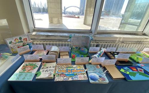 与“旧有新生,变废为宝”展区交相辉映的是“碳索生活,绿水青山”宣传手册的展区。翻开手册,内容丰富多样,涵盖了垃圾分类、资源回收利用、节能减排等多个方面的知识。如“潜水奇遇记”、“携手‘蔚’来”、“‘徽’常环保”等作品内部排版精致有序,学生们力求使手册在形式上打造出独特的视觉风格,用图文并茂的呈现方式使复杂的环保知识变得通俗易懂、生动有趣。