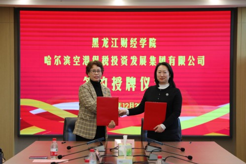 12月26日,我校与哈尔滨空港保税投资发展集团有限公司、哈尔滨阿克托斯经济贸易有限公司在尚德楼第二会议室举行校企合作签约暨授牌仪式。