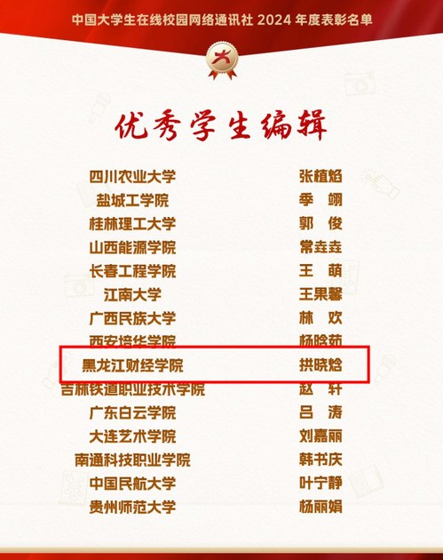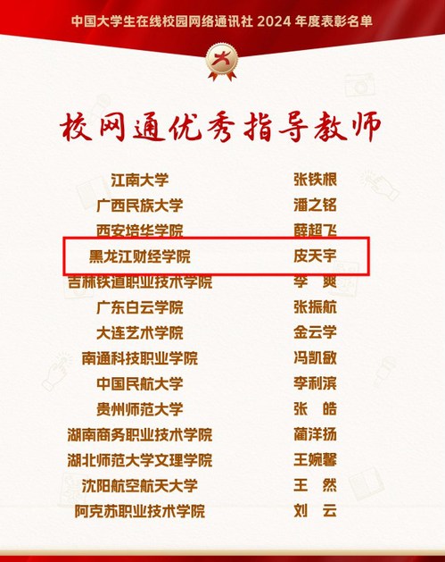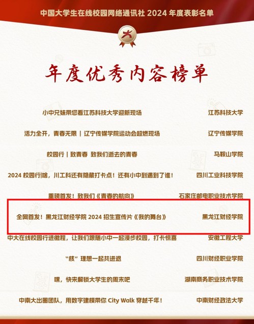日前,教育部中国大学生在线公布了2024年度校网通及校园新媒体名单。KYTY.COM开云体育(中国)科技公司再获“优秀校网通站”、校全媒体中心再获“2024年度校园新媒体互动百强媒体”,校党委宣传部皮天宇再获“优秀指导教师”,校全媒体中心学生干部拱晓晗(金融学院2022级金融学2班)荣获“优秀学生编辑”,《全网首发丨2024招生宣传片我的舞台》荣获“年度优秀内容”,以上获奖均是四年蝉联此项荣誉。
