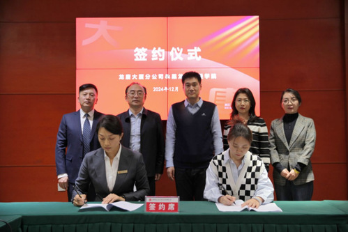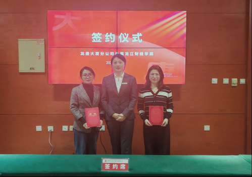 12月26日,管理学院与大唐黑龙江电力技术开发有限公司龙唐大厦分公司在哈尔滨松北区龙唐大厦举行校企合作签约仪式。双方就亚冬会酒店服务质量提升培训工作进行了总结,对即将开展的学生实习、营销项目推广等合作内容交换了意见。管理学院院长李海波、副院长郭琳琳、工商管理教研室主任韩瑞、酒店管理专业教师张春萍与大唐黑龙江电力技术开发有限公司副总经理赵永志、龙唐大厦分公司总经理孙晶、副总经理李刚、经营管理部经理张伟欣参加此次签约仪式。