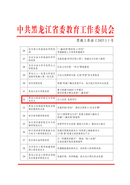 近日,省委教育工委公布了全省高校党建与业务融合案例评选结果,学校党委推荐的艺术学院党总支案例《艺心向党 美育同行》获评优秀案例。