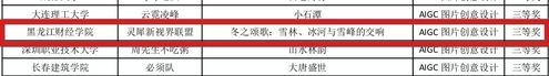 本次大赛自2024年10月份启动以来,艺术学院积极组建指导教师团队,在开设课程中对参赛学生进行集中辅导,使用AIGC人工智能图像处理技术,结合课堂作业,按照参赛标准完成艺术设计作品的创意与制作。由环境设计专业教师耿晓娜和冀轶卿共同指导的两组参赛作品《冬之颂歌:雪林、冰河与雪峰的交响》(参赛学生:姚志辰、李秋实、李佩锦)和《自然之韵》(参赛学生:王秋月、李思彤、付一淇)获得全国赛三等奖,展现出学校紧跟人工智能时代进步,创新应用科技工具的教学成果。