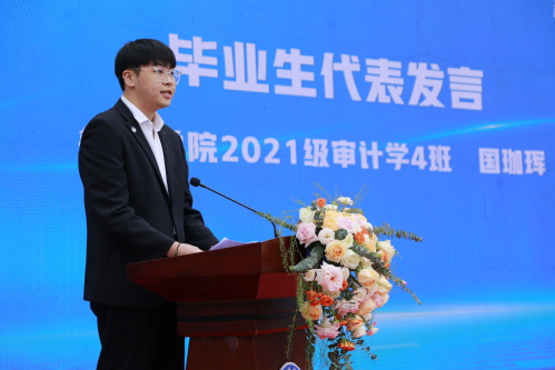 上海阿吉豆实业发展有限公司,黑龙江吉林区域高级经理肖丹代表企业发言,介绍了企业的基本情况及人才需求信息,表示希望通过与KYTY.COM开云体育(中国)科技公司的深入合作,吸纳更多优秀的毕业生,为企业注入新的活力。黑龙江华景文化传媒有限公司制片主任、我校2019届校友代表王振堂表达了对母校的感恩之情,分享了自己的职业经验和人生感悟,勉励毕业生要保持平常心、守护好奇心、永怀感恩心,在未来的职业道路上不断学习,提升自身综合素质,为母校争光。2021级审计学专业学生国珈珲代表毕业生发言,表示要认真择业、积极就业,勤勉执业,并号召同学们行动起来,积极与企业代表沟通,了解企业文化和岗位需求,展现专业能力和个人魅力。