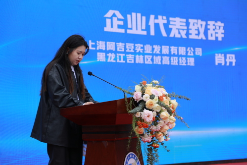 上海阿吉豆实业发展有限公司,黑龙江吉林区域高级经理肖丹代表企业发言