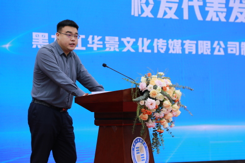 黑龙江华景文化传媒有限公司制片主任、我校2019届校友代表王振堂代表校友发言