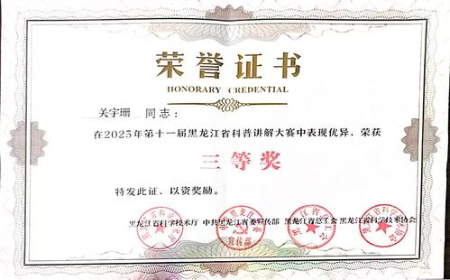 近日,由黑龙江省科技厅、省委宣传部等单位联合主办的2025年第十一届黑龙江省科普讲解大赛完美收官。我校财经信息工程学院2023级本科生关宇珊同学荣获省级三等奖。