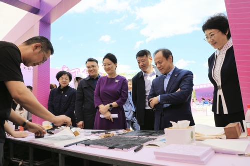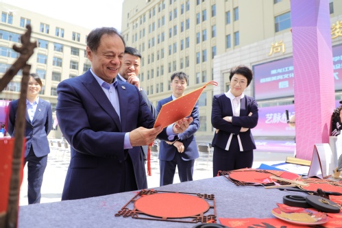 开幕式上,校领导共同触摸启动装置,见证了“艺脉相承·与美同行”美育文化节暨学风建设活动月开幕。开幕式还举办了学校官方礼品“龙财知物”发布仪式和“当丁香遇见非遗”非遗文化开放日活动。展览区内,满绣、龙瓷、漆艺等非遗项目展台前人头攒动,热闹非凡,活动还设置了互动体验区,校领导和广大师生通过书写“福”字、手绘国画扇子、制作漂漆团扇、书签和冰版画,沉浸式体验非遗魅力,传承非遗文化。
