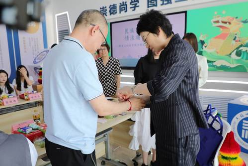 会上,来自维吾尔族、藏族、回族、畲族、满族等民族师生依次进行自我介绍,分享了各自民族的端午习俗。“将粽叶折成漏斗形状,糯米铺平压实……”在体验环节,校领导与各民族师生一起包粽子,大家分组协作,捋粽叶、填糯米、加红枣、扎绳结,尽管手法略显生疏,但在欢声笑语中,一个个形态各异的粽子诞生了,三角形的“棱角分明”、长条形的“别具一格”,每一个粽子都承载着师生们对传统技艺的探索热情。校领导为师生发放葫芦和香包,为他们系上代表祝福的五彩绳,现场气氛温馨和谐,每个人脸上都洋溢着幸福的笑容。